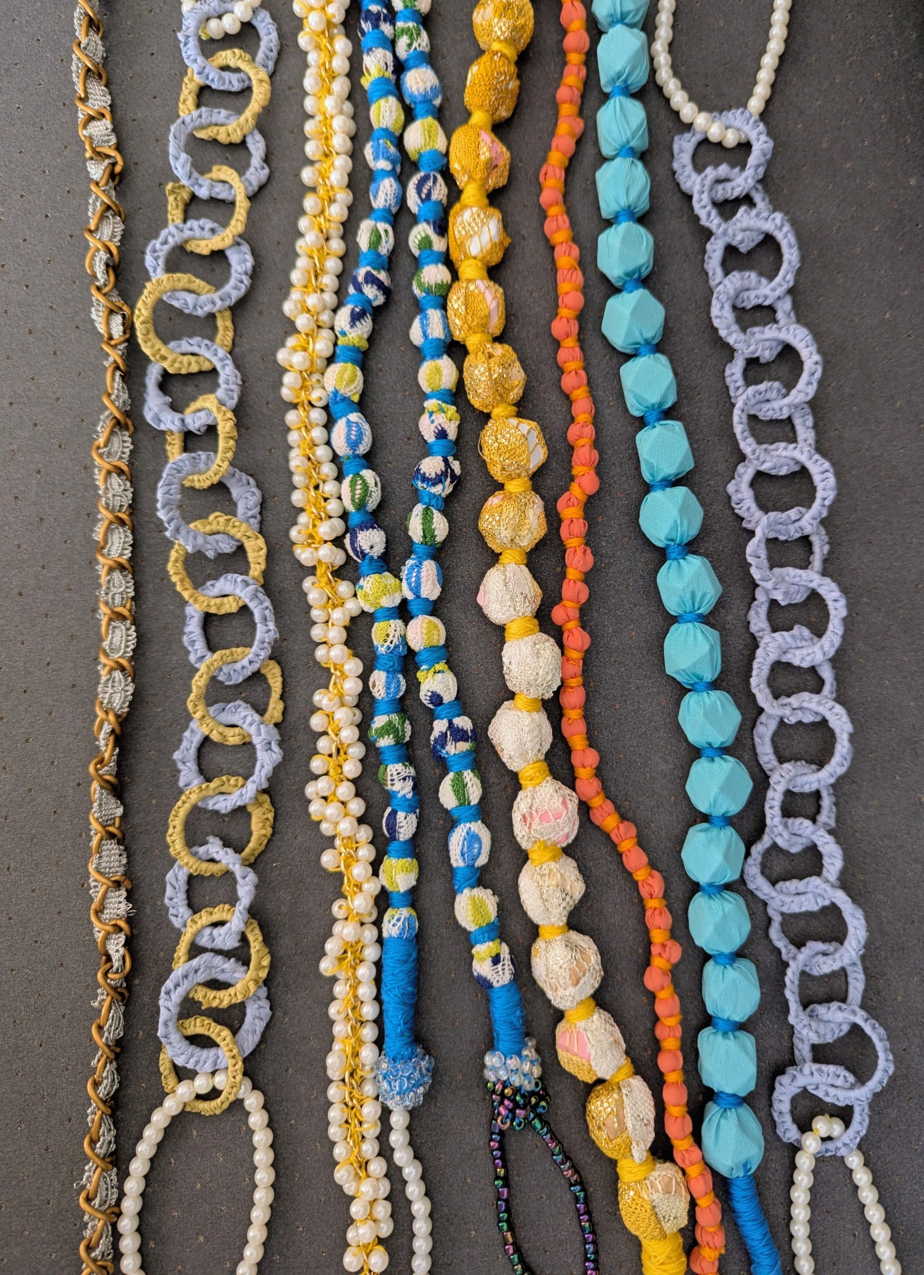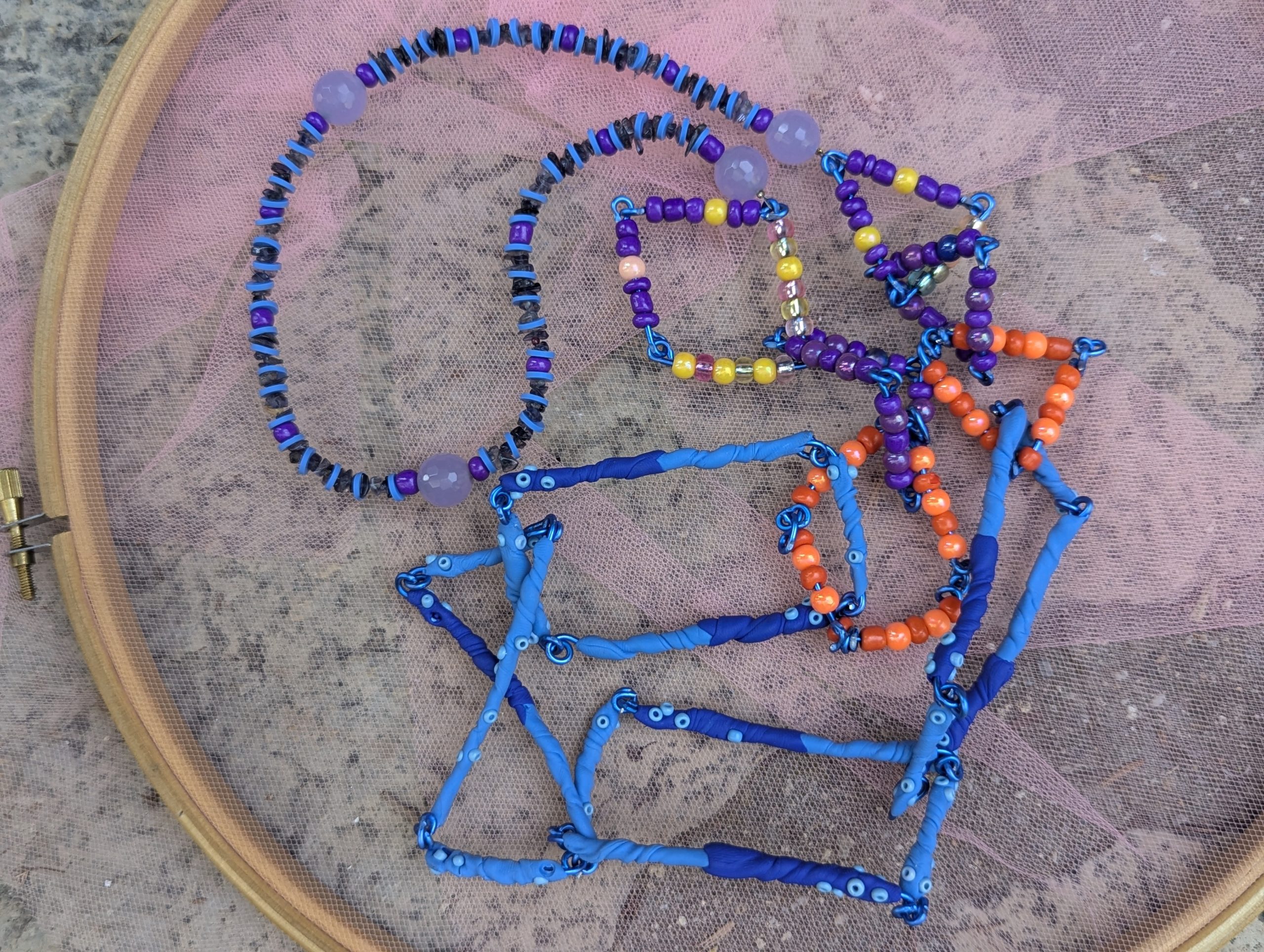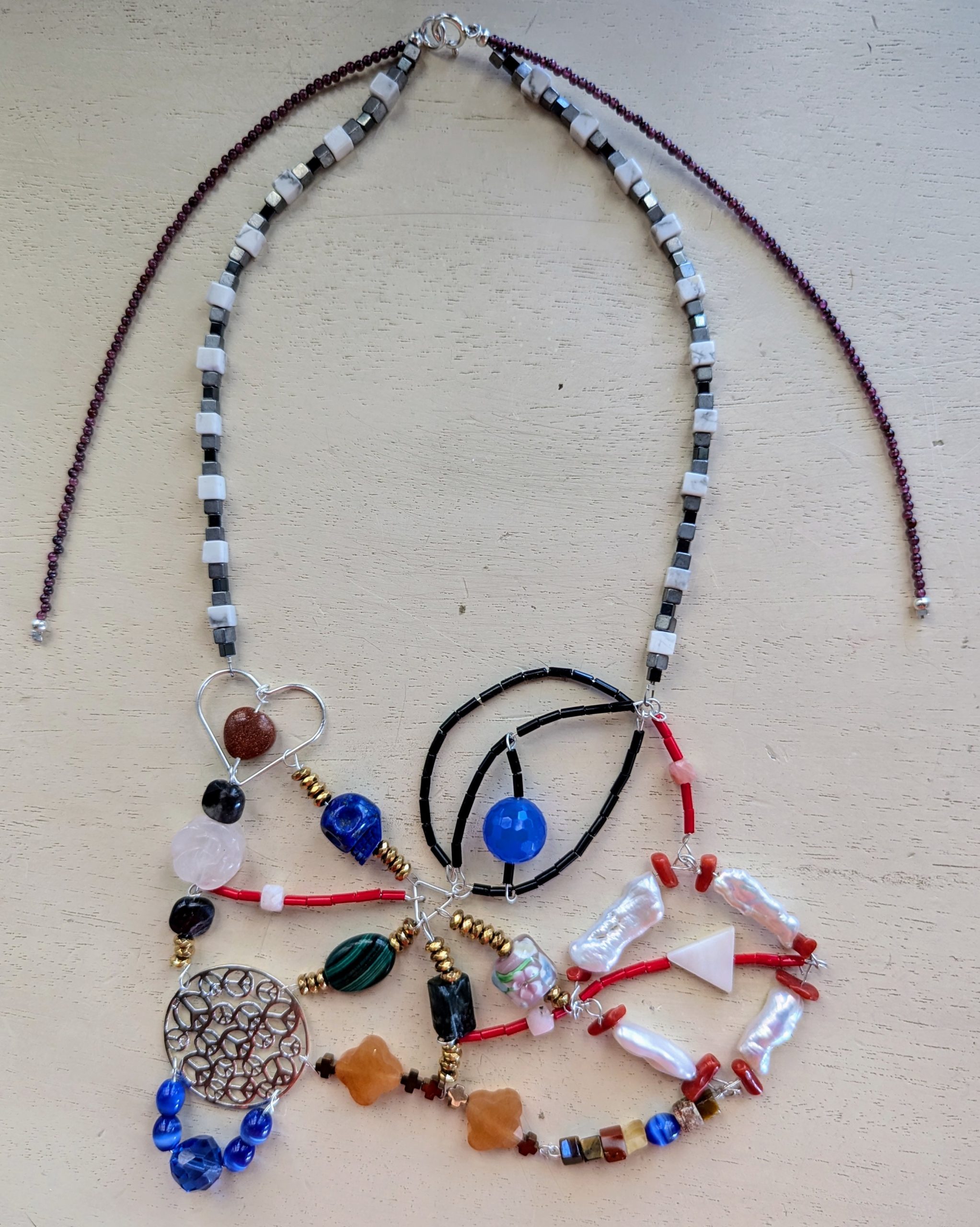 Semi precious stones, sterling silver, acrylics, epoxy, organic materials